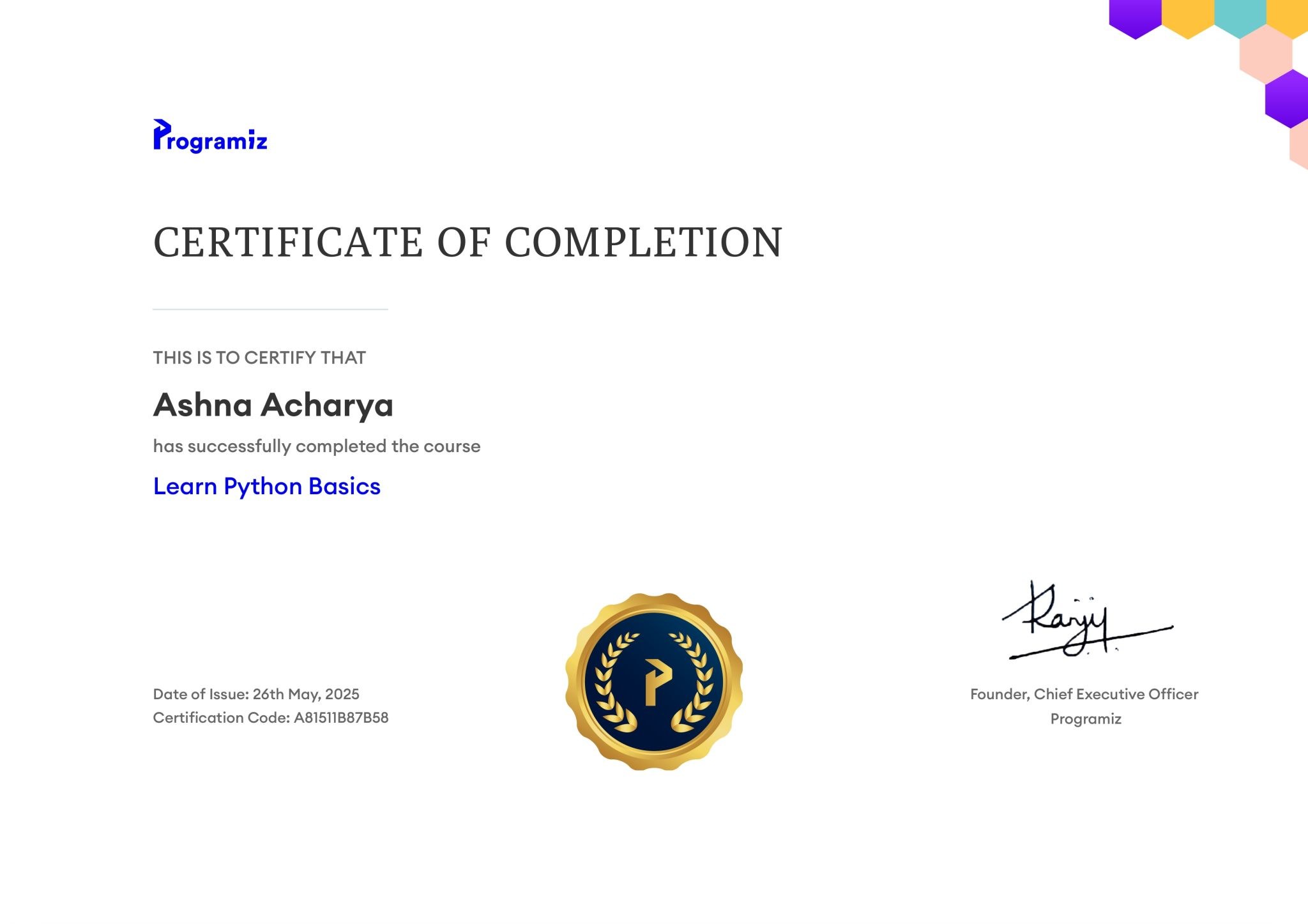 I'm Ashna Acharya, a CSIT student passionate about technology, design and creativity.